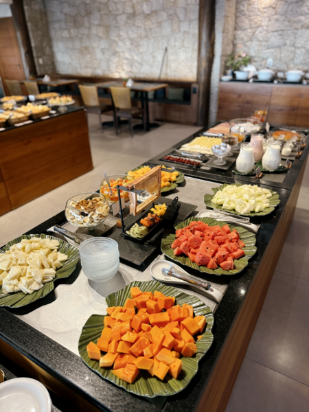 No contexto do biohacking, a comida é informação para as nossas células. O café da manhã temático do Village Praia do Rosa é desenhado para ser uma extensão dessa lógica de cuidado. Cada item do nosso buffet é selecionado para oferecer uma carga nutricional que suporte as atividades de um dia de sol e mar, priorizando o frescor e a procedência local.