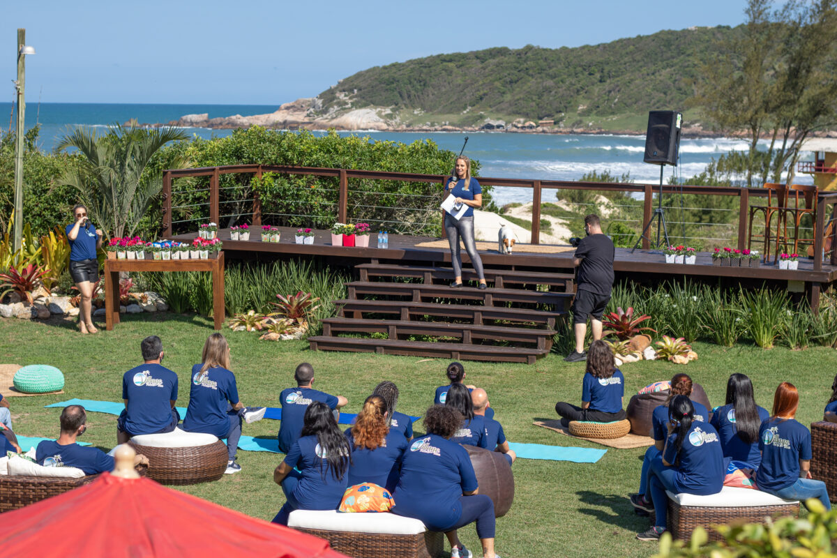 – Gramado e Áreas Externas: essenciais para eventos ao ar livre, happy hours ao pôr do sol ou atividades de team building, aproveitando o clima da Praia do Rosa.